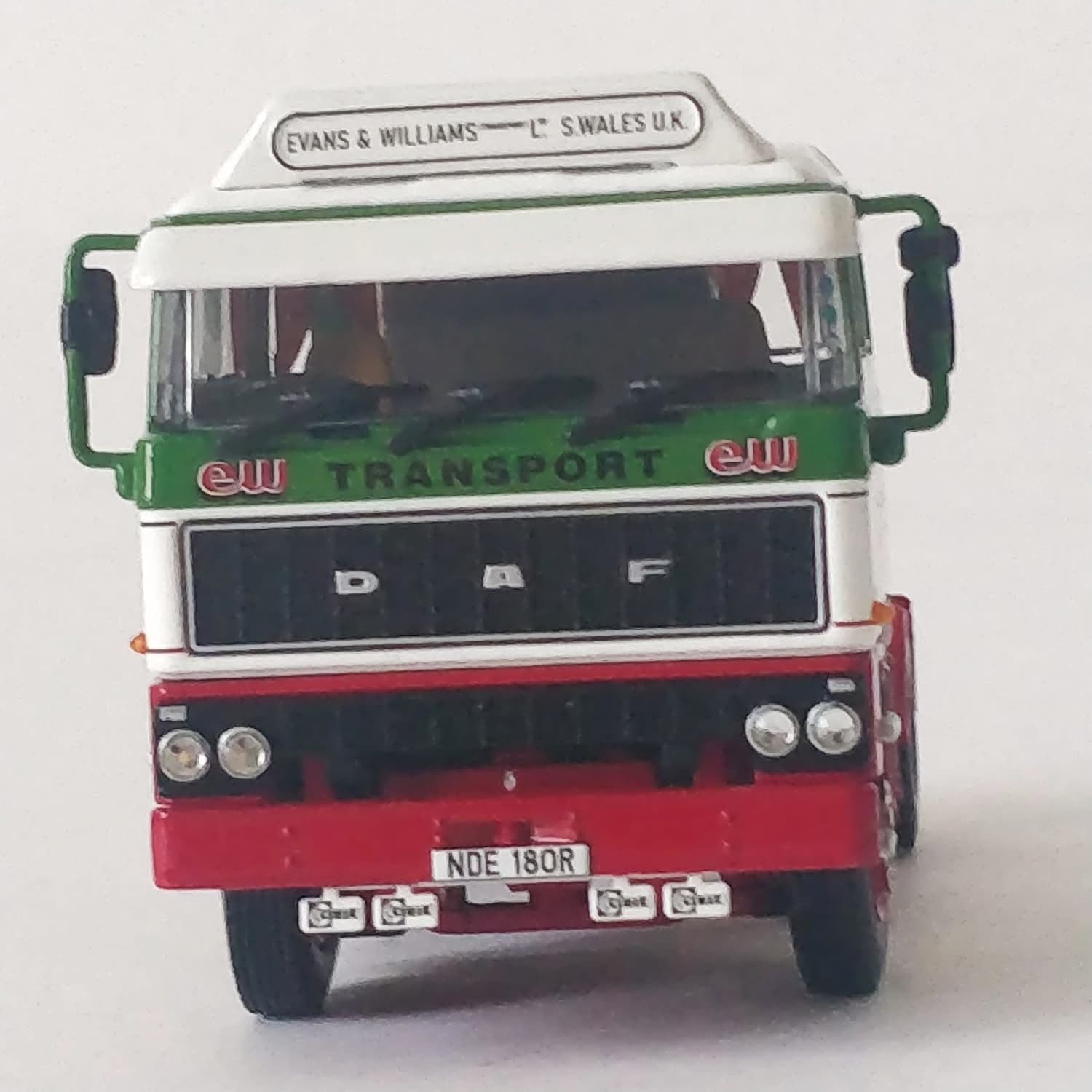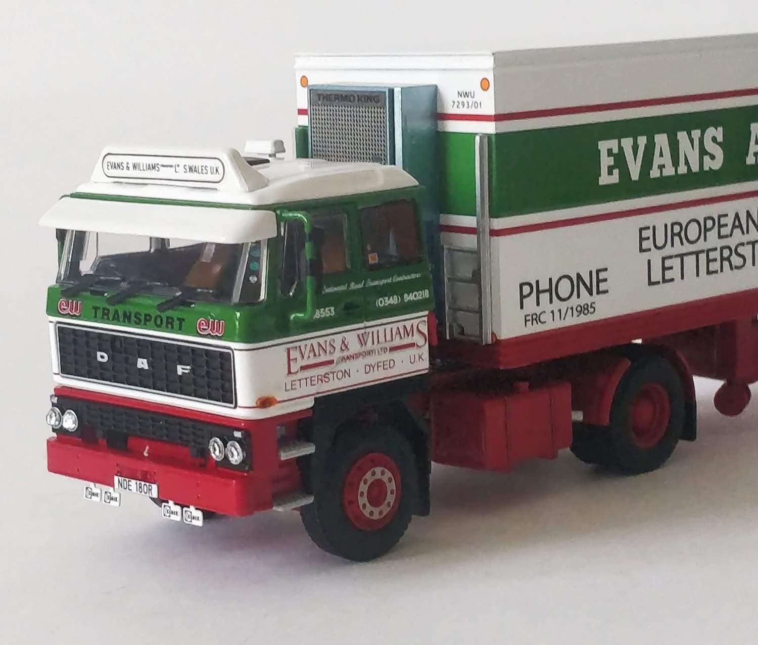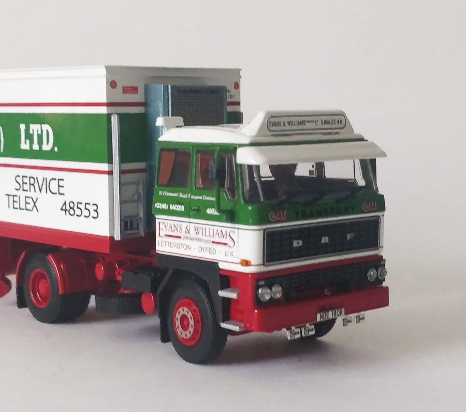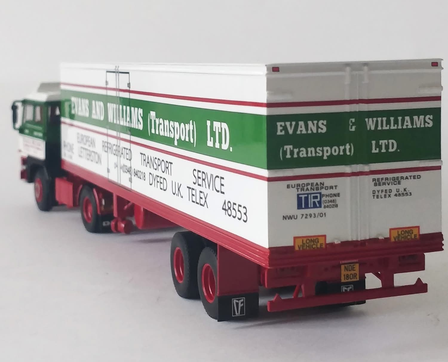 Diecast metal model of a Daf 2800 4 x 2 with classic fridge trailer in the livery of Evans & Williams Transport UK Ltd Dyfed Wales.